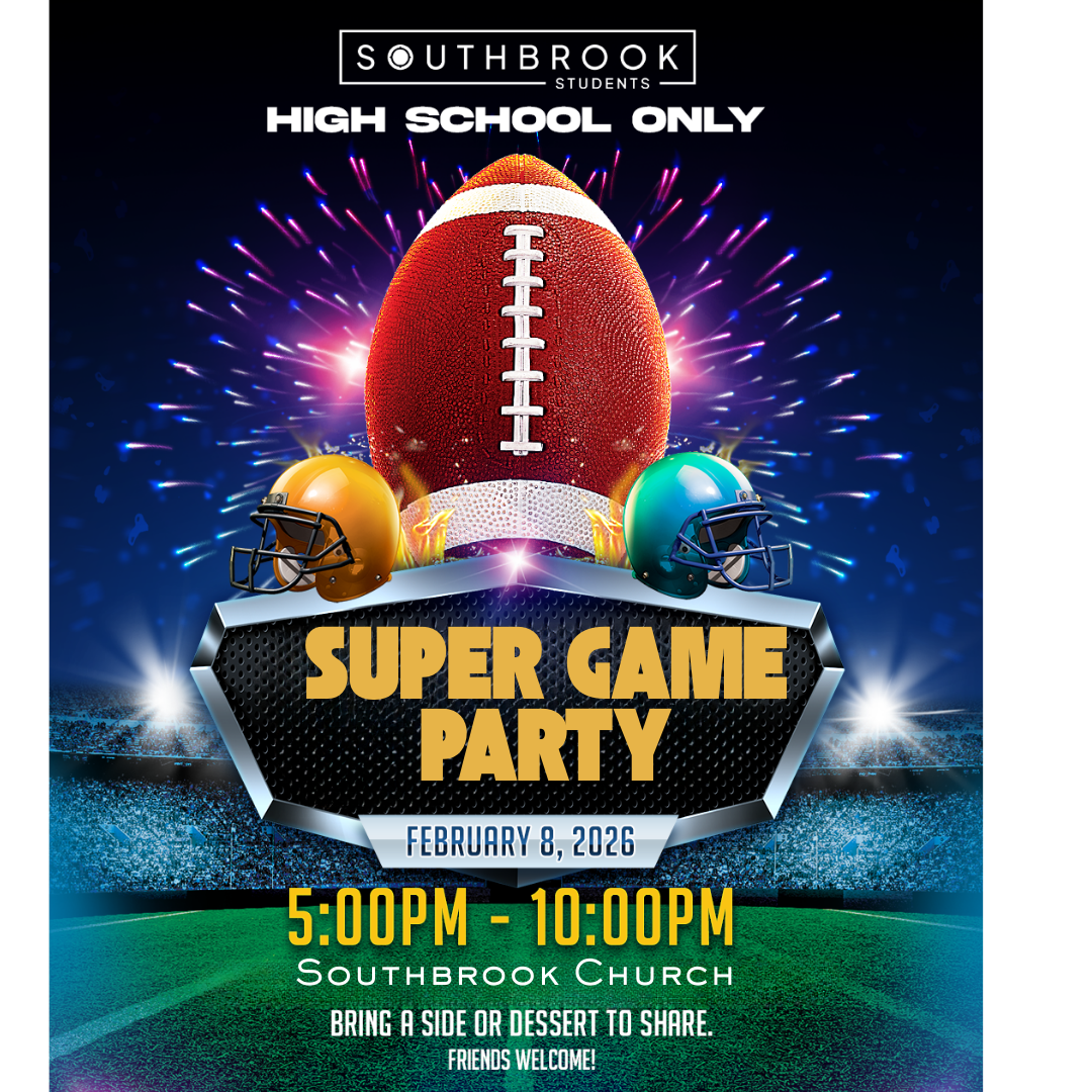 High school students are invited to a free Super Game Party on Sunday, February 8, from 5:00–10:00 PM in the Southbrook Church Quad. Bring a side or dessert to share, and feel free to invite friends for a fun night together! + iCal Export Details Date: Time: Location Southbrook Church Worship Center Organizer Email cgoetz@southbrook.church Phone (414) 427-1929 Note